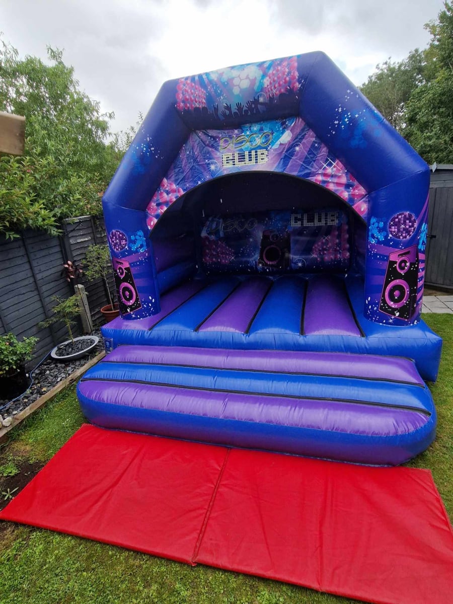 Get ready to bounce in style with our Disco themed Bouncy Castle! This inflatable comes with an exciting built-in LED disco light and a Bluetooth speaker.